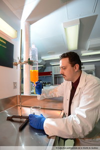 Il prépare une solution de Rhodamine 6G préalable à la visualisation des empreintes latentes au laser.