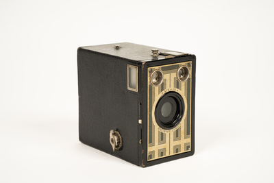 Entre 1934 et 1942Appareil photo argentique, Brownie Junior modèle Six-16, fabriqué par Canadian Kodak Co., Ltd. entre 1934 et 1942. Il fonctionne avec une pellicule 616, un film argentique en rouleau.