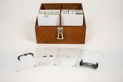 Ces nombreuses fiches, plus de 600, permettent aux portraitistes d’effectuer des portraits-robots en superposant les différentes parties des caractéristiques faciales, comme les yeux, le nez, le menton, les lèvres, les cheveux, les sourcils, la barbe et la pilosité faciale. S’ajoutent également les fiches des accessoires de mode, comme des lunettes et des couvre-chefs (chapeaux). Finalement, les dernières fiches sont composées de traits distinctifs, notamment les lignes d’âges (rides), la couleur de la peau et une grille pour y inscrire les cicatrices.