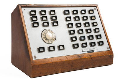 Entre 1976 et 1980Module de répartition des appels téléphoniques, utilisé dans un centre de traitement des appels du District de Québec, Section Rivière-du-Loup.