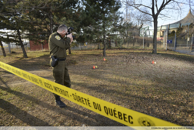 27 novembre 2012Technicien en scènes de crime photographiant une scène de crime simulé au pied du pont Jacques-Cartier, sur l’île Sainte-Hélène, le 27 novembre 2012.