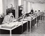Les agents Raymond Dumas et André Ste-Marie dans les bureaux des empreintes digitales de la Sûreté provinciale, à Québec, en 1955. -