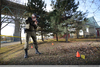 Technicien en scènes de crime photographiant une pièce à conviction (douille) sur une scène de crime simulé au pied du pont Jacques-Cartier, ... -